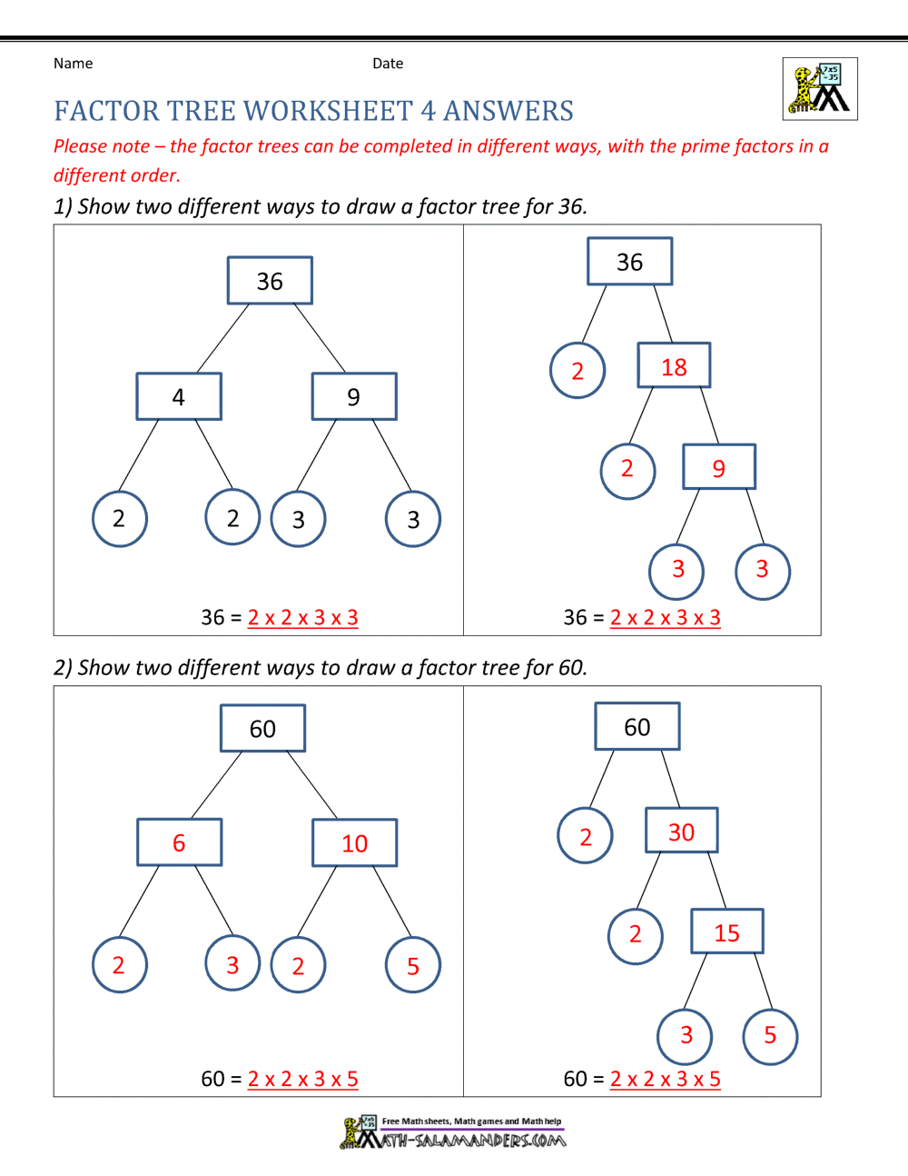 Factor Tree Worksheets are valuable tools for teaching prime factorization. By breaking down numbers into their prime factors using a visual representation, students can enhance their understanding, practice their skills, and develop problem-solving abilities. Incorporating factor tree worksheets into the learning process can greatly benefit students’ mathematical knowledge and overall academic growth.