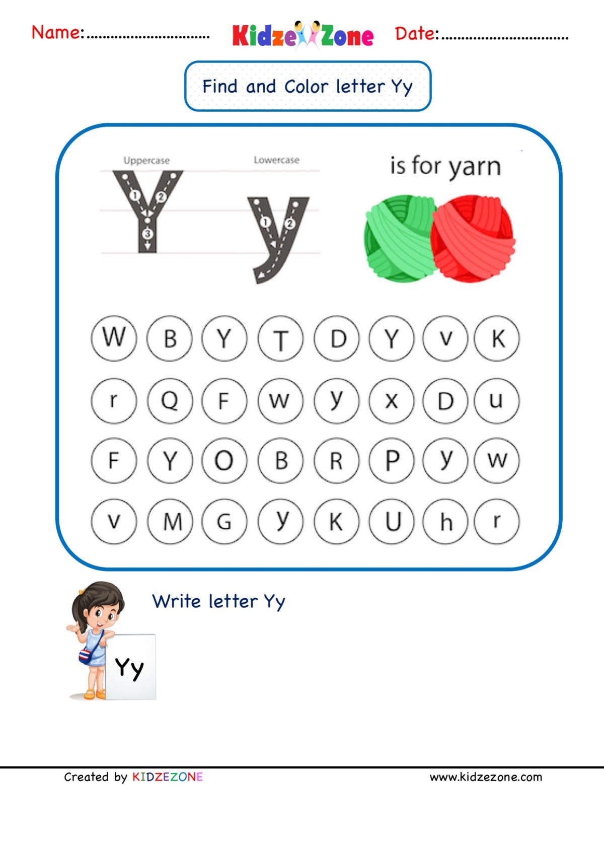 Another important aspect of letter Y worksheets is helping children recognize the letter Y among other letters. Worksheets often contain a mix of uppercase and lowercase letters, and children are asked to identify and circle all instances of the letter Y. This activity helps children visually differentiate the letter Y from other letters and reinforces their ability to recognize it in various contexts.