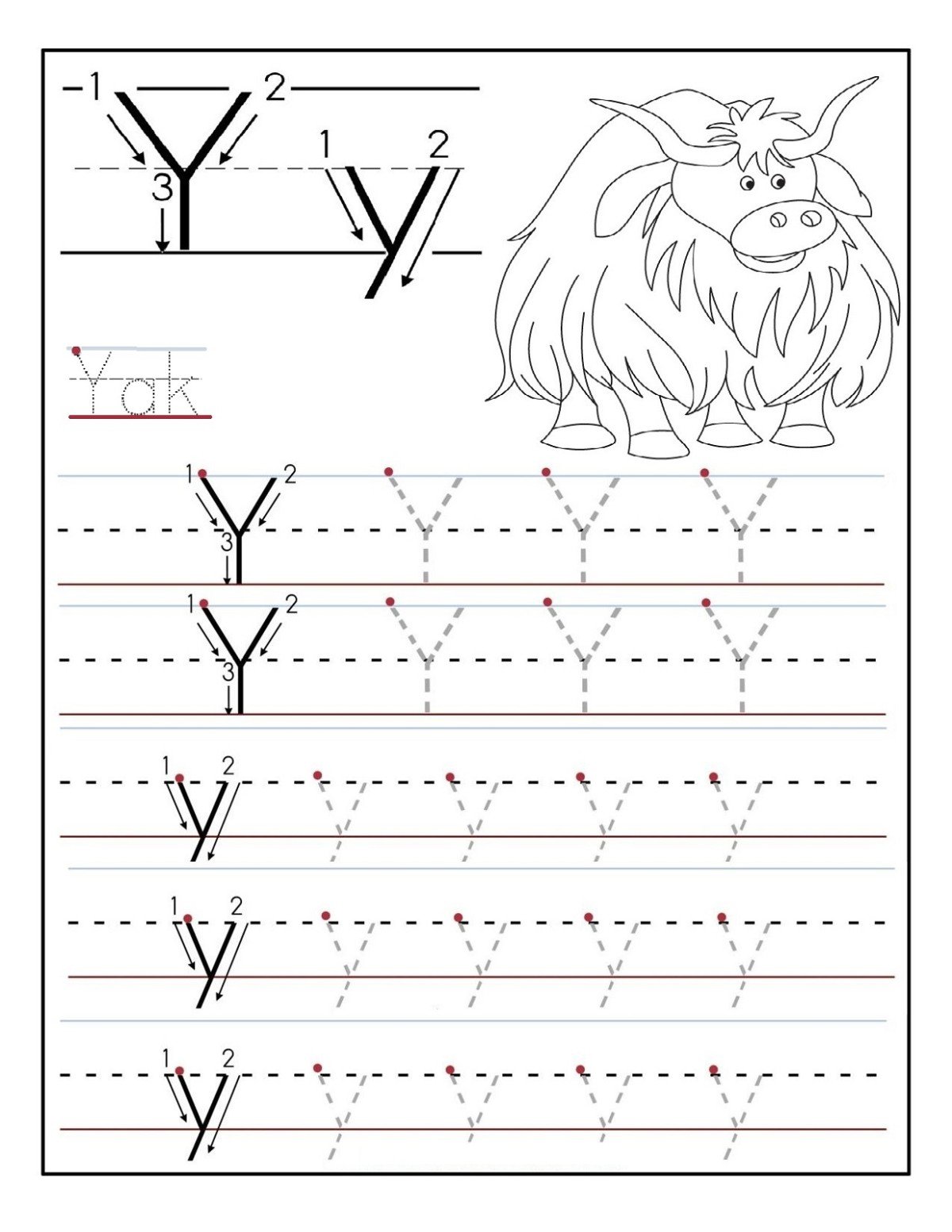 One of the fundamental activities in letter Y worksheets is tracing and writing the letter Y. Children are provided with dotted lines that guide them in forming the letter Y correctly. They can practice tracing the letter Y multiple times to develop muscle memory and improve their handwriting skills. Additionally, there are spaces provided for children to write the letter Y independently, allowing them to demonstrate their understanding of the letter’s shape and formation.