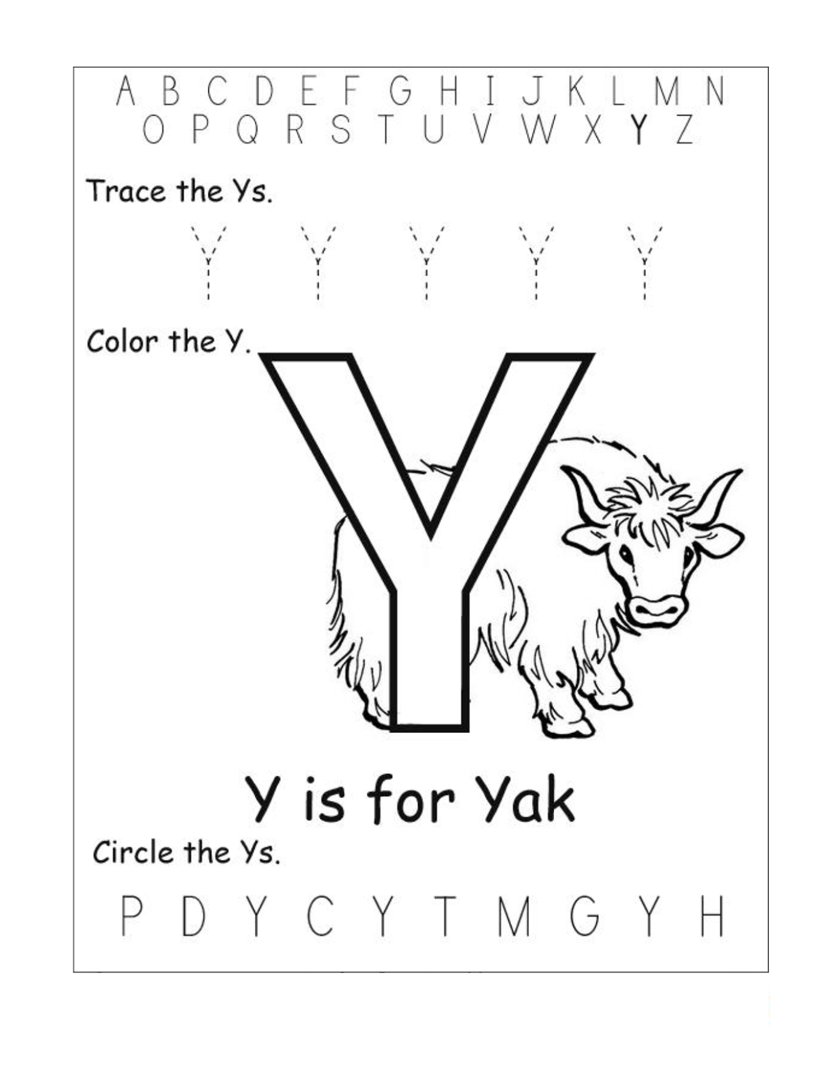 Worksheets Letter Y