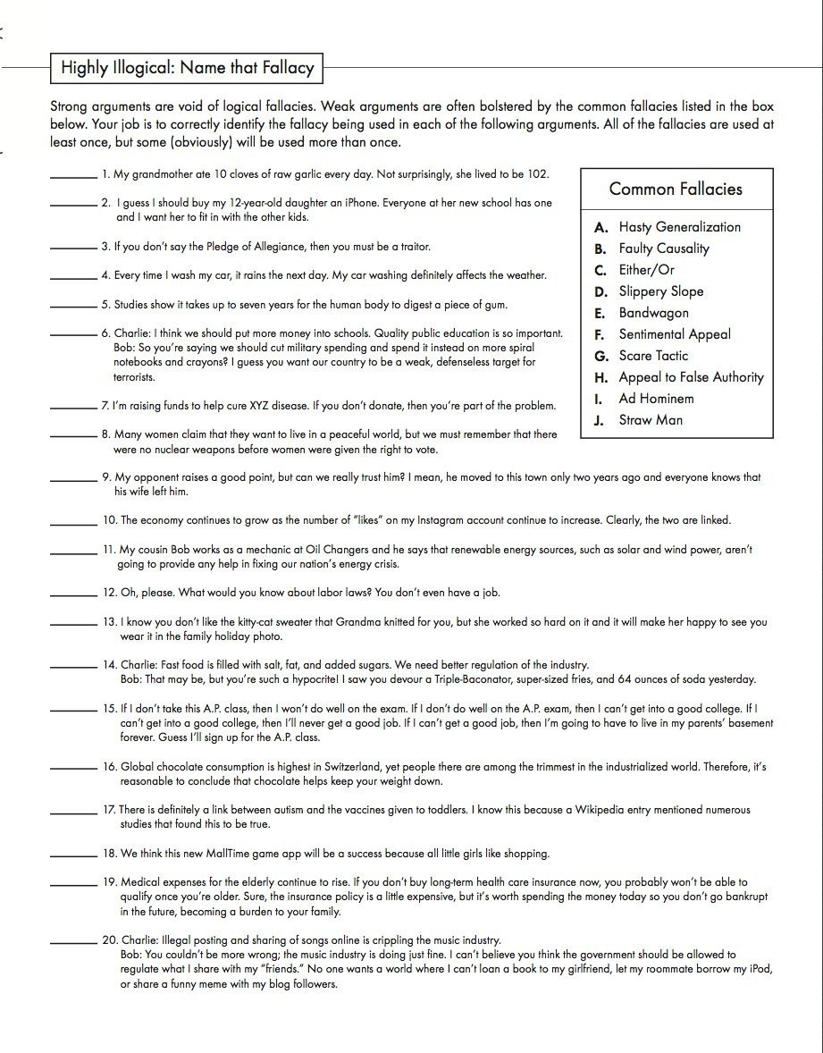 Identifying Logical Fallacies Worksheet