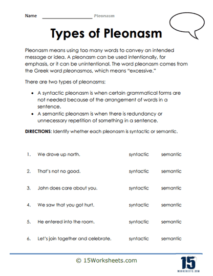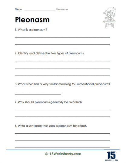 5. Pleonasm Worksheets